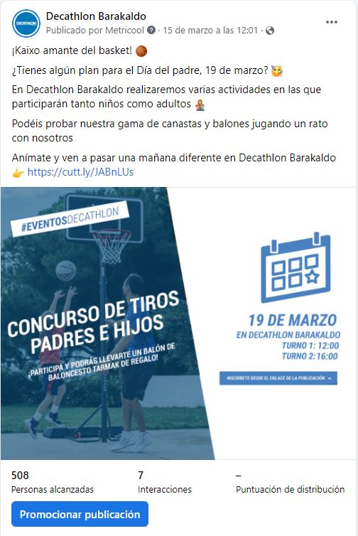 Mis funciones eran en torno al Marketing Digital, llevar las RRSS de Decathlon a nivel de Bizkaia: