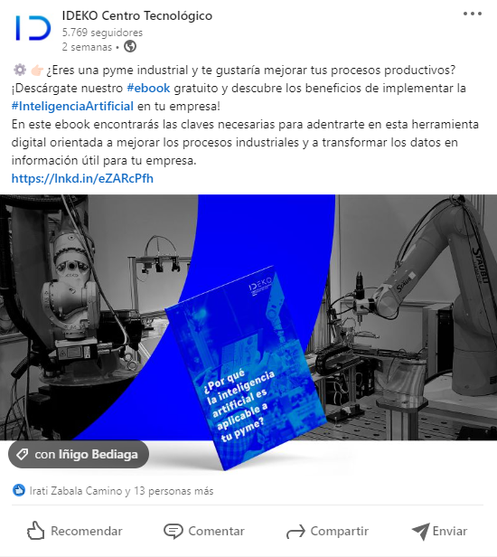 Mientras realizaba el máster de Marketing Digital, he tenido la oportunidad de llevar a cabo las prácticas en el centro tecnológico de Ideko, ubicado en Elgoibar, Gipuzkoa.